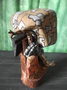 Hilfsmittel sind u. a. Sägen, Schnitzmesser und Feilen, Spachtel, Kitt und Klebstoffe, Pinsel und Ölfarben…Besonderheit ist meistens der Einsatz von Lötkolben, mit deren Hilfe vorhandene Holzmaserungen, Einkerbungen und Strukturen noch intensiviert oder variiert werden.
