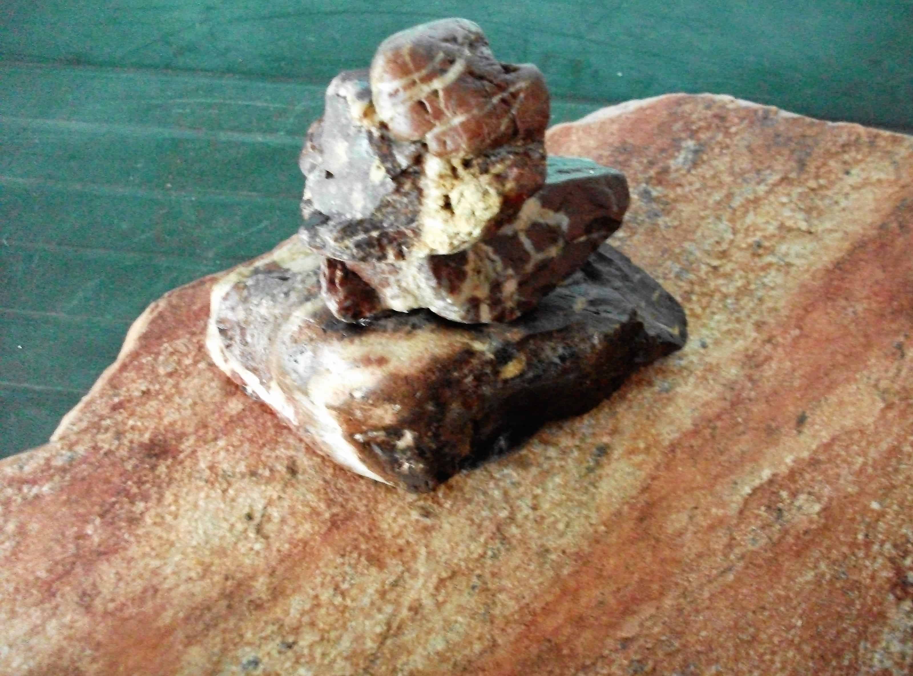 Gesucht, gefunden und kreativ bearbeitet: Holzstücke und Steine.